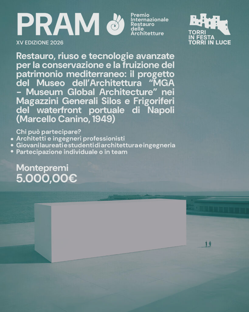 "Il premio PRAM di architettura è divenuto in questi anni un appuntamento atteso da architetti e designer. Promosso da “Torri in Festa Torri in Luce” si muove inizialmente nel panorama culturale partenopeo per poi acquisire un carattere internazionale grazie ad un lavoro serio e meticoloso."